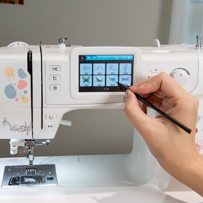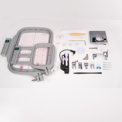 - Mais de 100 desenhos de bordado incorporados